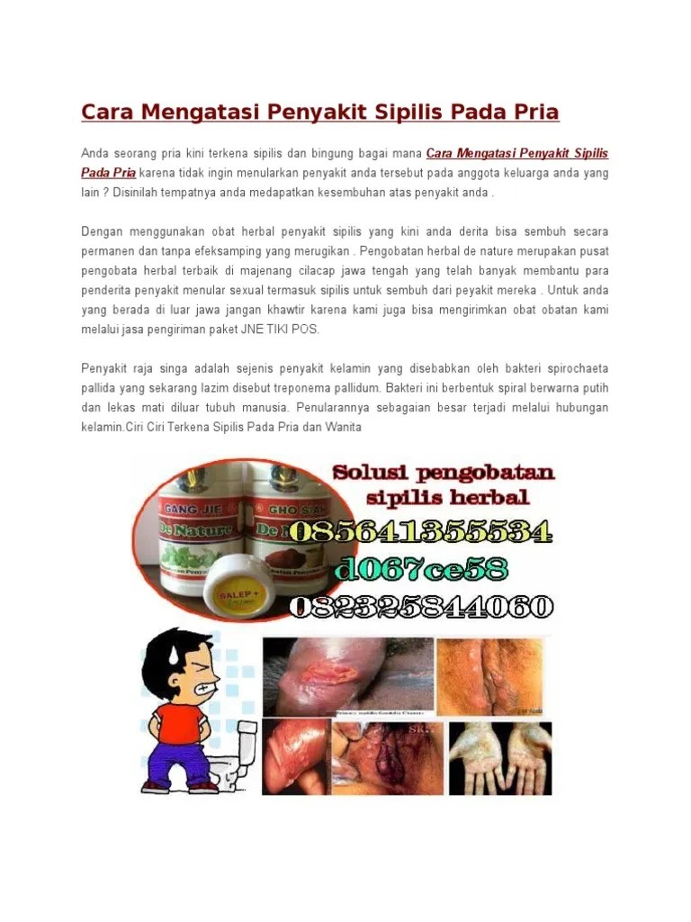 Bakteri penyebab kencing nanah ini dapat masuk ke dalam tubuh melalui luka saat melakukan hubungan. Tentang obat sipilis sembuhkan 3hari ampuh. Pengobatan penyakit sipilis untuk pria hampir sama dengan pengobatan penyakit sipilis untuk wanita (kecuali untuk wanita hamil), namun jika penyakit ini tidak diobati atau pengobatan tidak dilakukan hingga. pada saat ini de nature indonesia memberi sedikit info. penyakit sifilis menimbulkan luka pada alat kelamin atau mulut.